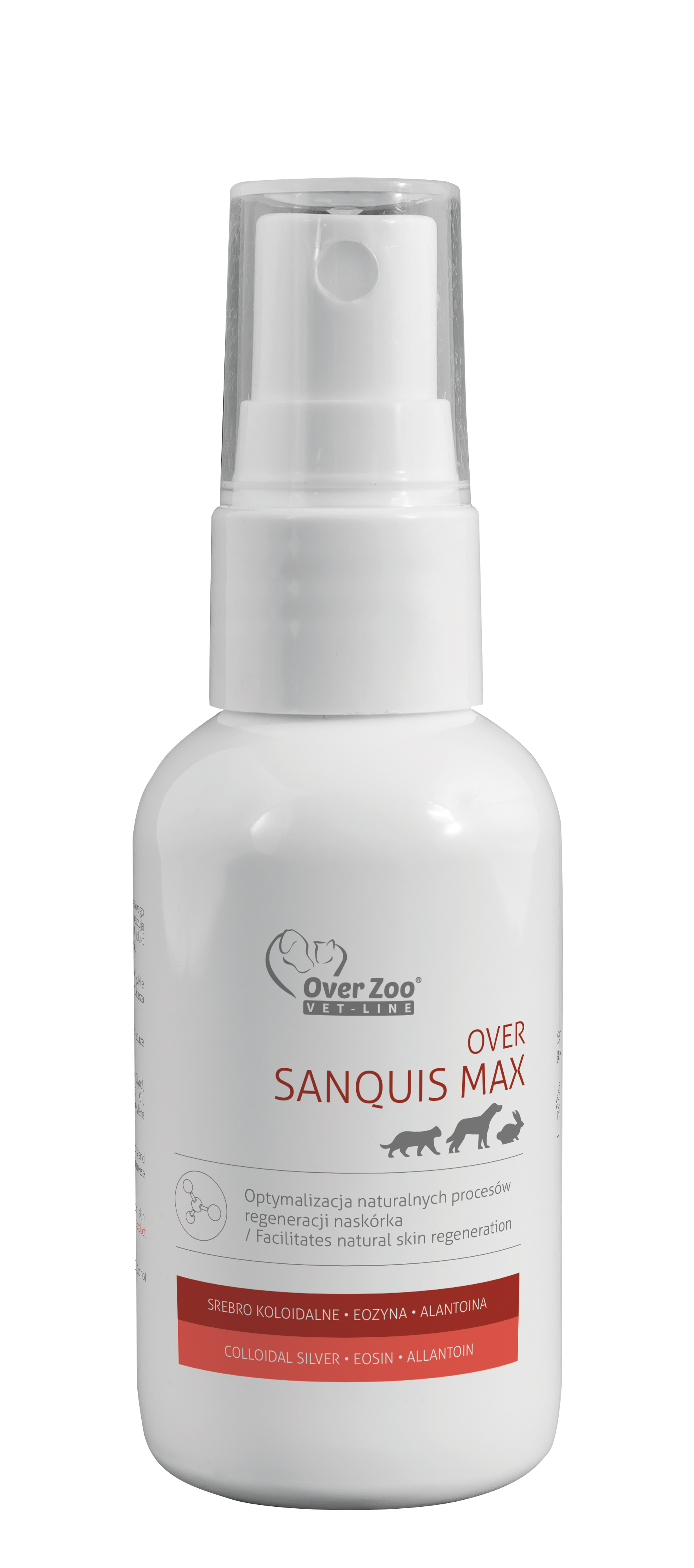 Over Sanquis Max purškalas pažeistai odai su sidabru ir alantoinu